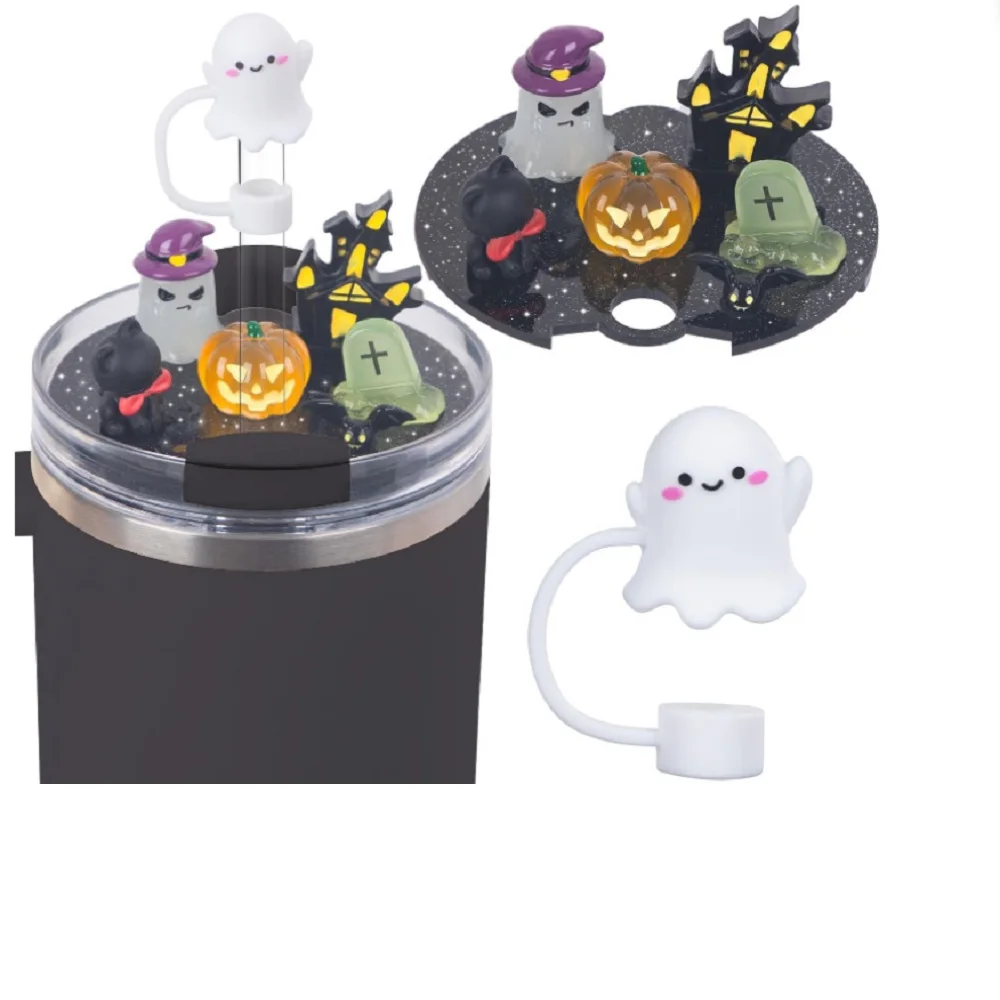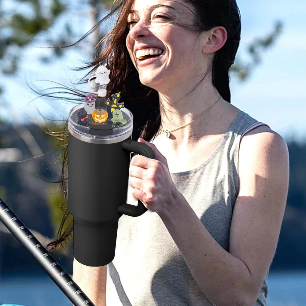 Halloween Acrylic Lid Charms with Cute Ghost Straw Cover Replacement Cup Top Decor for Stanley 40oz Tumbler with Handle Features: 1. Miniature Landscape: Adorn your drinkware with a charming micro-landscape; this lid accessories charm transforms your 40oz tumbler into a delightful visual escape, adding a touch of nature to your hydration experience. 2. Snug Fit Design: Engineered to perfectly fit 40oz tumblers, this lid charms decor ensures a secure and stylish addition to your bottle, enhancing its aesthetic while preventing any lid mismatch. 3. Adorable Aesthetics: With its cute and attractive design, this acrylic lid charm not only adds personality to your bottle but also turns it into a conversation piece. 4. Easy Identification: This replacement cup top decor helps in quickly recognizing your water bottle in a crowd, making it a practical accessory for gym, office, or outdoor activities. 5. Gift of Choice: Looking for a unique gift? This water bottle lid decoration is an excellent choice, offering both functionality and a personal touch, making it the best present for any occasion.